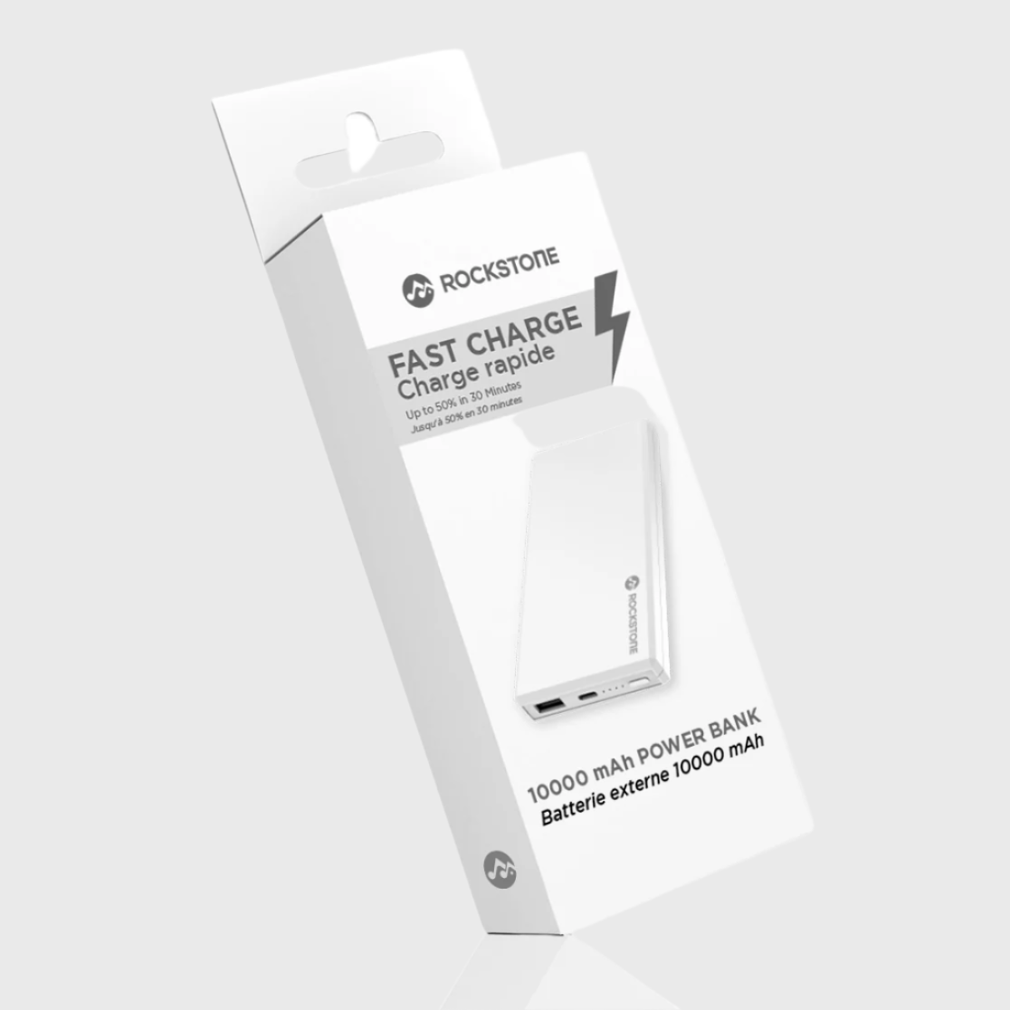 Reliable power on the go with the Rockstone 10,000mAh Power Bank. Compact yet powerful, it keeps your devices charged wherever you are.